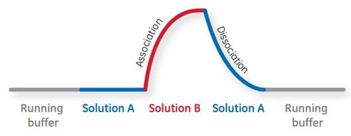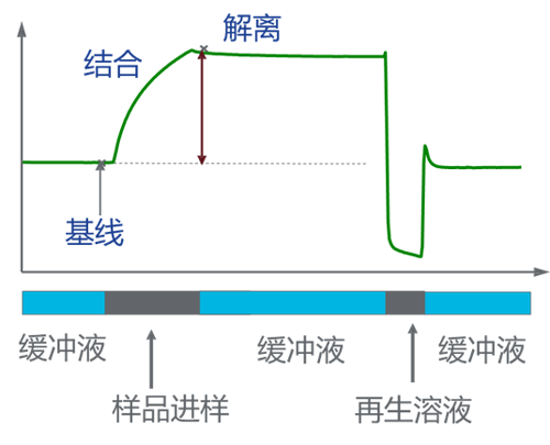 Biacore图谱中各段线段都是什么意思,仪器分别在进什么溶液?
