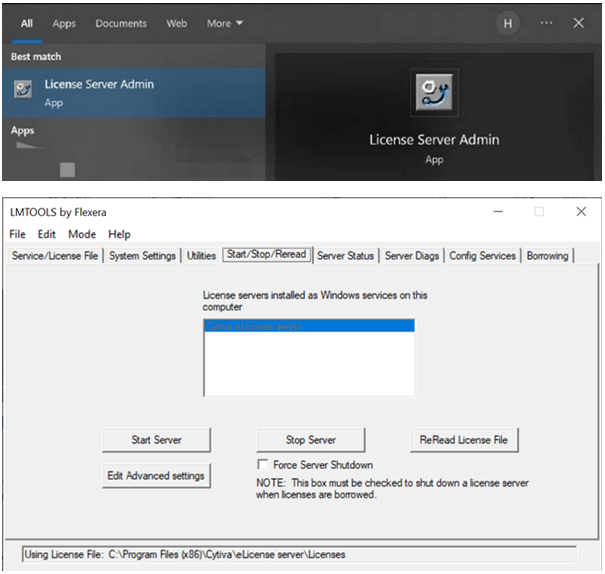 - 4.0版本:新的server后,License Server Admin – Start/Stop/Reread – Start Server(如下图)