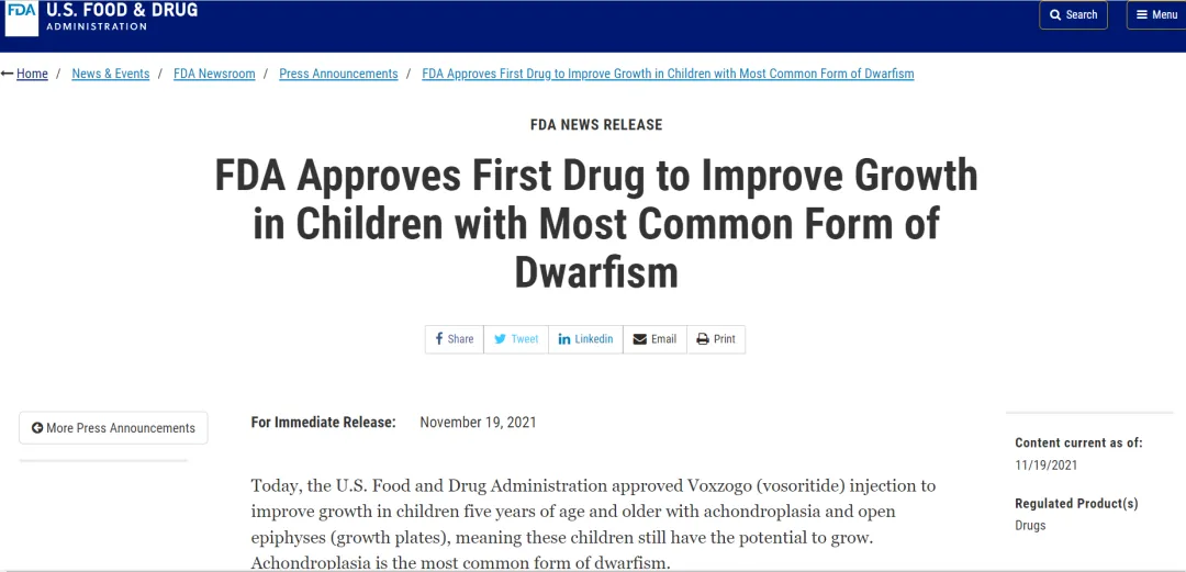 作为《权力的游戏》和《指环王》资深影迷,小编本编对于剧中“小矮人”的角色尤为着迷。同样,作为Biacorer,针对侏儒症等相关疾病的研究进展也在时刻留意。2021年11月19日,FDA批准注射制剂Voxzogo(vosoritide,中文译名:伏索利肽)用于治疗≥5岁伴有开放性骨骺的软骨发育不全儿童患者(图1)。Voxzogo预计将于12月中下旬在美国上市,这为受侏儒症相关疾病困扰的孩子带来了增高的曙光。