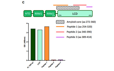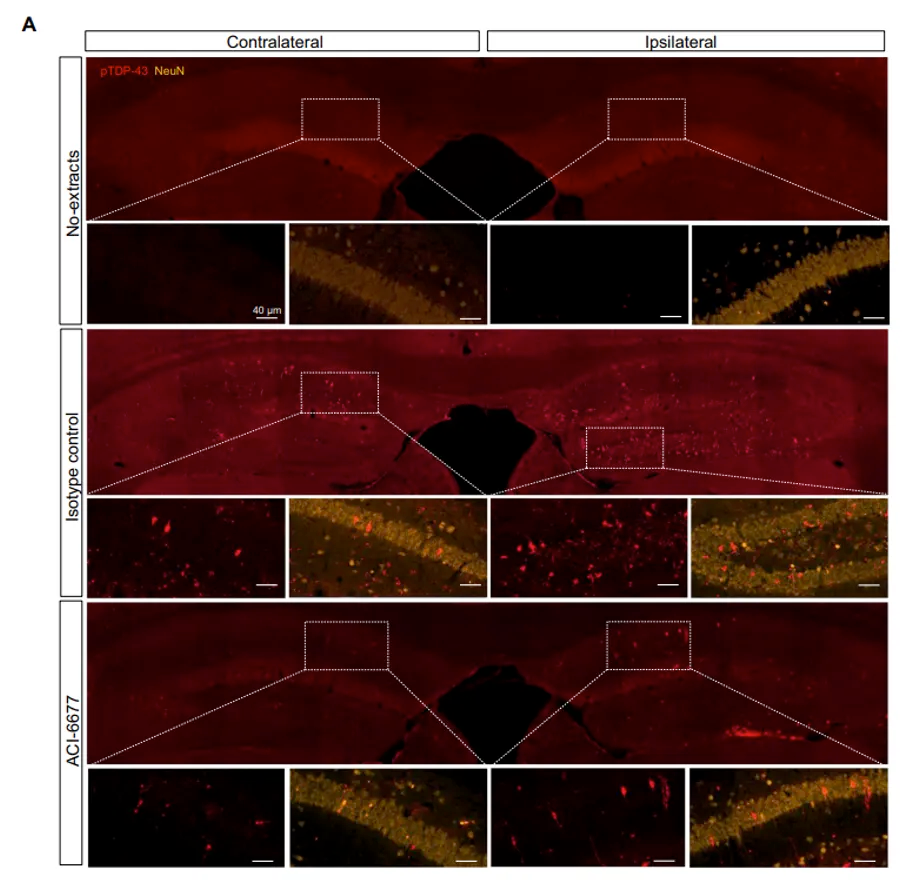通过构建靶向TDP-43致病性蛋白酶抗性淀粉样核心的单克隆抗体ACI-6677,该抗体对TDP-43具有pM级结合亲和力,且可结合所有C端TDP-43片段。