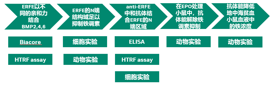 2020年,牛津大学MRC Weatherall分子医学研究所团队在Blood期刊发表文章,发现铁调素的表达受到骨形成蛋白BMP/SMAD信号通路的调控。ERFE抑制BMP6,下调肝细胞中BMP/SMAD信号,从而抑制铁调素。随后他们又开发了针对ERFE的N端结构域的抗体,能解除铁调素抑制,减轻小鼠的地中海贫血症状。