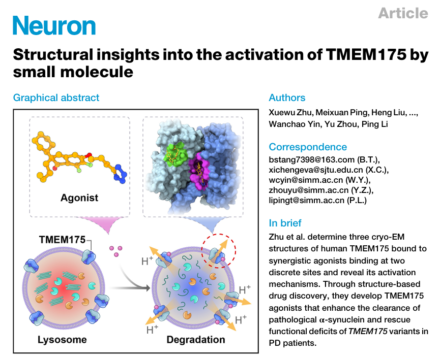 跨膜蛋白175(TMEM175)的上调通过促进α-突触核蛋白聚集体的清除,具有改善帕金森病(PD)的潜力。理解TMEM175激动剂的结构基础对于揭示其PD治疗潜力至关重要。