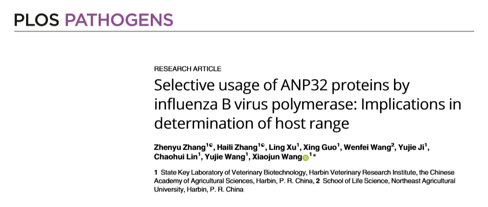 近日,中国农业科学院哈尔滨兽医研究所王晓钧团队在《PLoS Pathogens》杂志刊载了题为 「Selective usage of ANP32 proteins by influenza B virus polymerase: Implications in determination of host range」的文章。该文章系统性地揭示了 B 型流感病毒感染的种间限制机制,发现宿主 ANP32A&B 蛋白是决定 B 型流感病毒聚合酶活性的必须关键因子。