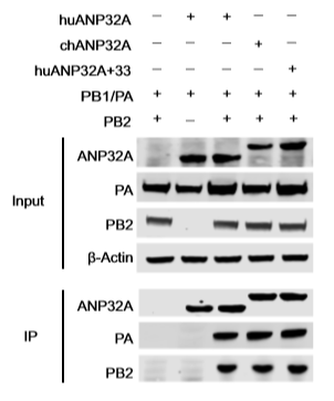 该结果表明,与 ChANP32A 相比,huANP32A 对 IBV 聚合酶具有更强的结合亲和力,并且 33 个氨基酸的插入降低了 ANP32A 与 IBV 聚合酶的结合亲和力。