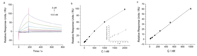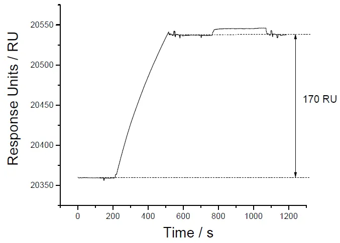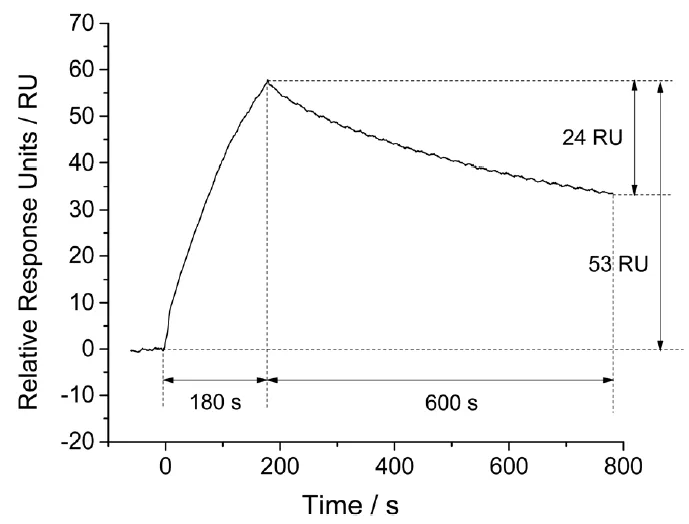 注入含不同浓度目标物(例如NSE),180 s,会观察到信号 (RU) 上升;