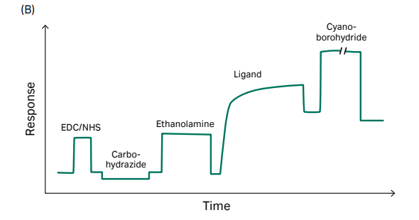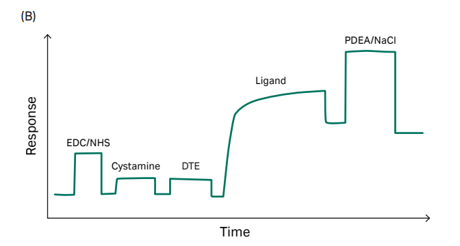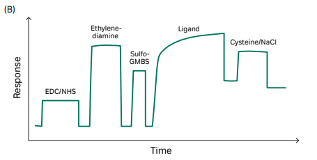 图7:利用表面芯片巯基偶联固定配体的典型传感器图