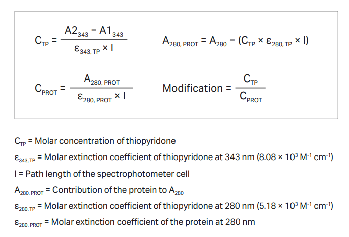 于280 nm (A280) 和343 nm (A1343) 波长处测定修饰蛋白质的吸光度;