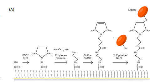 图8:通过马来酰亚胺偶联固定配体的化学原理