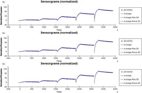 图5:根据亲和力及传感图重复性,评价批间相似度