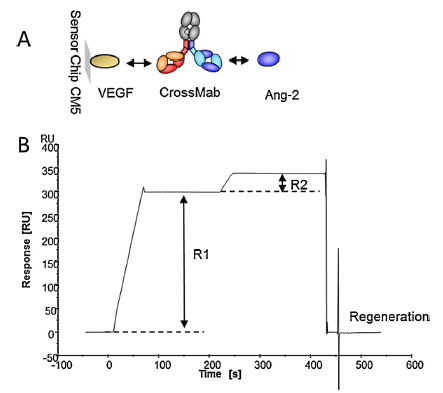在图1实验方案中,R1数值代表了faricimab针对VEGF的结合活性,而R2信号值取决于结合在VEGF芯片上的双抗数量及真实活性。