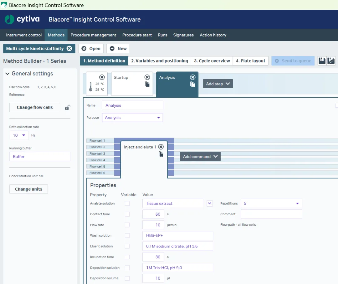 “Inject and elute”是一个强大的功能模块,它可以用来从传感器芯片的配体上洗脱结合的分析物,并将其收集到目标样品管中。通过重复的“上样-洗脱-回收循环”,可以将目标组分从复杂的样品溶液中“钓出”,并显著提高其浓度,从而方便进行后续的成分鉴定及分析。