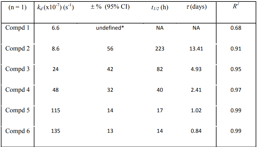 使用Prism软件绘制occupancy-time并拟合单一指数衰减获得速率常数k,即为解离速率kd。将此解离速率代入到对应的二元单循环动力学实验中,拟合得到ka和KD。