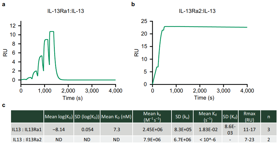 首先,在Biacore芯片上固定配体,进样高浓度分析物以达到饱和。此时,芯片表面为“IL-13/IL-13Ra2”复合物。