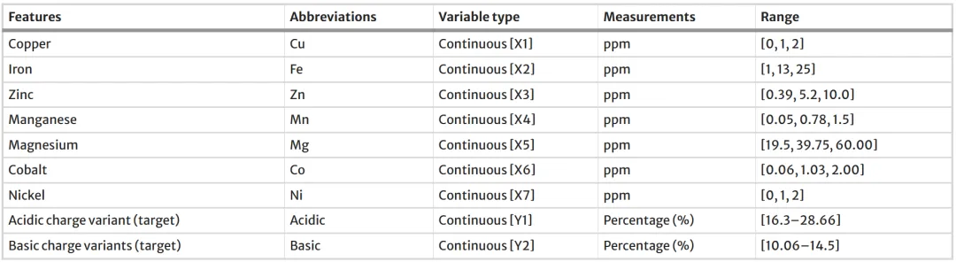 本文将为您介绍如何有效利用ML方法进行特征选择、CQA预测以及培养基优化。电荷异质性被认为会影响生物治疗产品的疗效,而金属离子在调节电荷异质性方面发挥了重要作用,尤其是铁(Fe)、铜(Cu)和锌(Zn)。本文介绍的架构中ML方法首先应用于初步数据集,通过特征排序方法识别对结果影响显著的金属离子。
