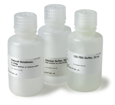 使用 GST 缓冲液试剂盒将不再需要执行费时的缓冲液制备,因此可快速、可重现和便利地进行纯化工作。GST 缓冲液试剂盒可与多种层析柱组合使用:GST SpinTrap,GST MultiTrap 96 孔板,GST GraviTrap,GSTrap FF,GSTrap 4B 和 GSTrap HP。
