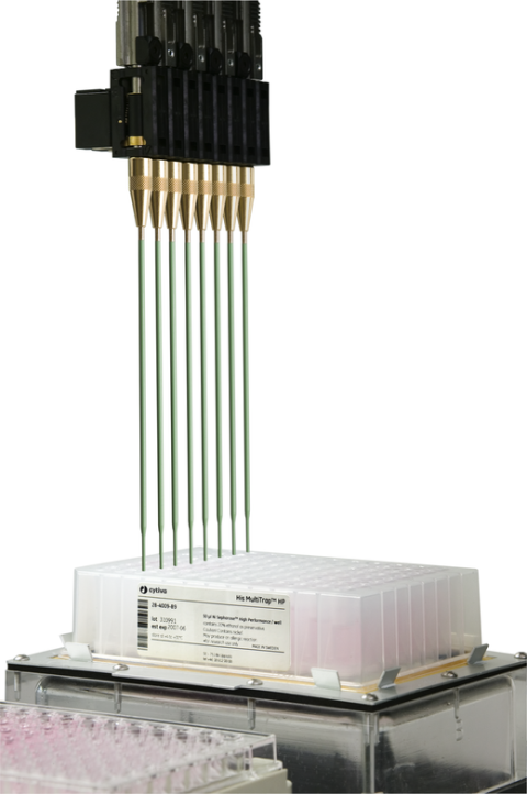 His MultiTrap FF 和 His MultiTrap HP 为预填充一次性 96 孔板,可采用固定化金属离子亲和层析 (IMAC) 法对带组氨酸标签的重组蛋白质实施可重现、高通量并行纯化。