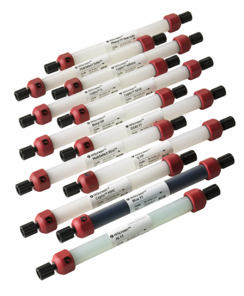 HiScreen 层析柱体积较小,体积为 4.7 mL,柱床高度为 10 cm,这使得其成为方法优化、参数筛选、耐用性检测以及便捷性蛋白纯化工艺规模扩大的极佳工具。可应用生产级液体速度,因为 10 cm 柱床高度可提供足够的保留时间,然后将结果用作按比例生产规模扩大的基础。