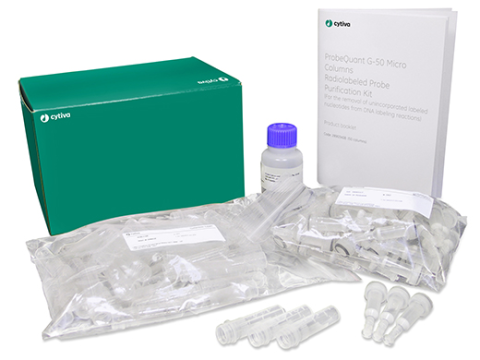 ProbeQuant G-50 微型层析柱使用离心柱层析法,以提供一种从未结合的标记核苷酸中快速且可靠地纯化标记探针的方法。此外,可在闪烁计数器中对部分洗脱的 DNA 进行计数,并将其与未纯化样本进行对比,得出结合百分比近似值。