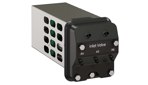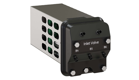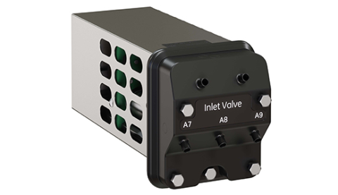 入口阀模块由三个隔膜阀组成。建议将泵 A 入口用于样品和缓冲溶液。最多可以在 A 泵之前添加两个额外的入口阀模块,总共得到九个 A 入口。B 入口用于缓冲液和洗涤液。如果需要额外的 B 进样口,可以安装一个额外的 B 进样口模块,总共得到六个 B 进样口。