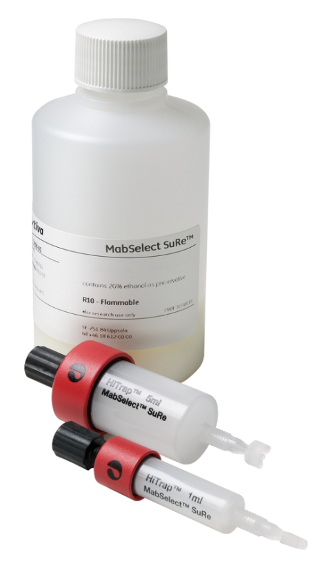这种用于单克隆抗体 (mAb) 纯化的填料包含刚性、高流速琼脂糖基架,可提供优异的压力/流速特性。与 Cytiva 的许多蛋白 A 层析填料一样,MabSelect SuRe 使用定向配基偶联来实现优异的结合载量。它显示出较低的非特异性蛋白结合率,从而降低了洗脱组分中的杂质水平。