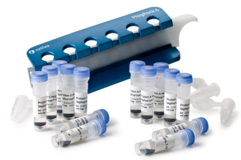 Protein G Mag Sepharose Xtra 磁珠用于对血清和细胞上清液中的单克隆和多克隆抗体进行快速、小规模的纯化及筛选。