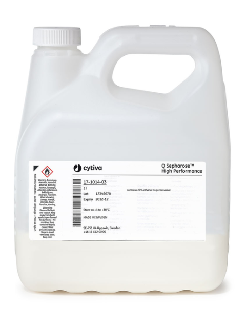 Q Sepharose High Performance is composed of crosslinked agarose beads with a mean diameter of 34 µm, modified with quaternary (Q) strong anion exchange groups. It is designed for intermediate purification and polishing applications and to be used when resolution and capacity have priority. Q Sepharose High Performance has high chemical stability and withstands effective CIP/sanitization protocols using sodium hydroxide