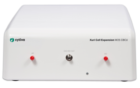 Xuri W25 CBCU 是 Xuri 细胞扩增系统 W25 的组成部件。该紧凑型系统包括质量流量计、气体压力、O2 和 CO2 浓度传感器以及 pH 值和溶氧 (DO)信号传感器。系统随附一根光纤电缆(培养袋传感器适配器 2.5 m 组件)。